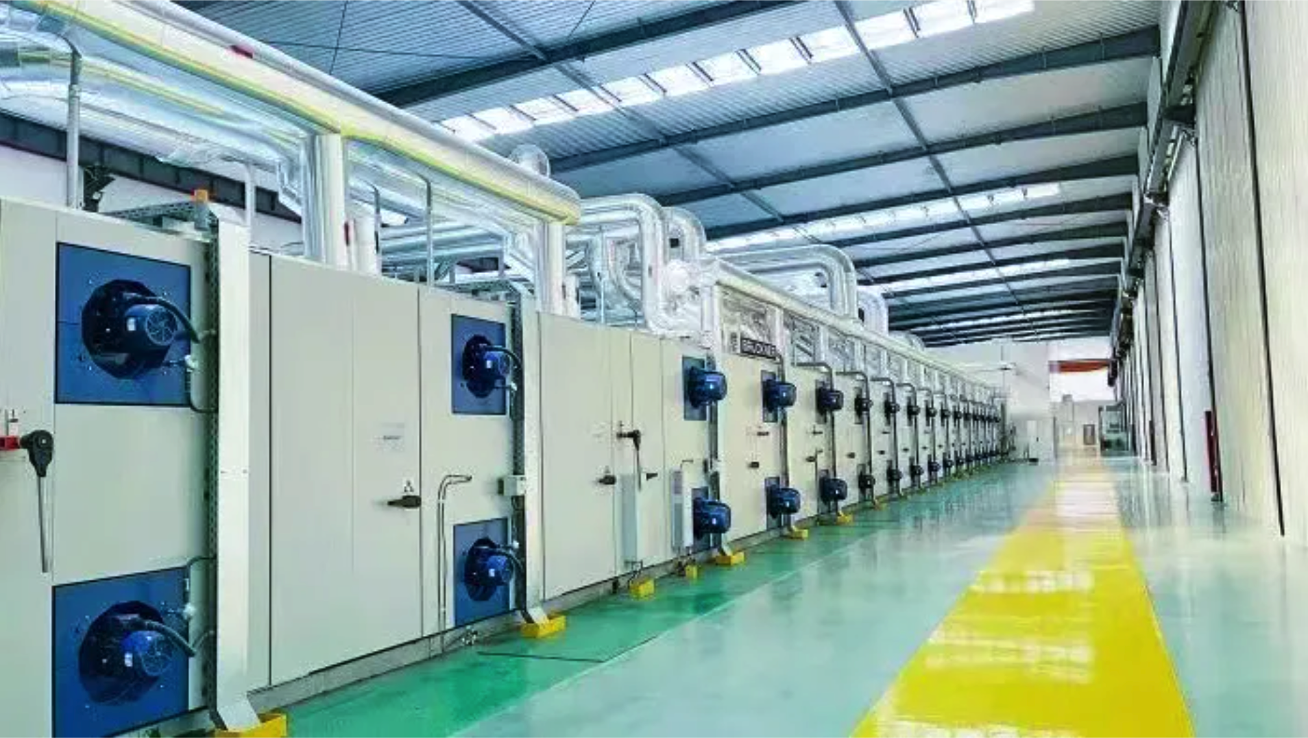 一臺約兩層樓高的巨型機器轟鳴著,源源不斷地“吐出”寬約8米、光滑平整的膜材,在燈光的映射下宛若平靜的河面,緩緩“流”過數(shù)十米長的車間。